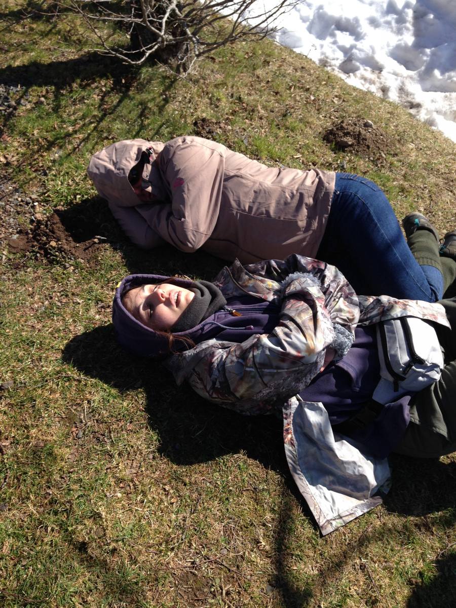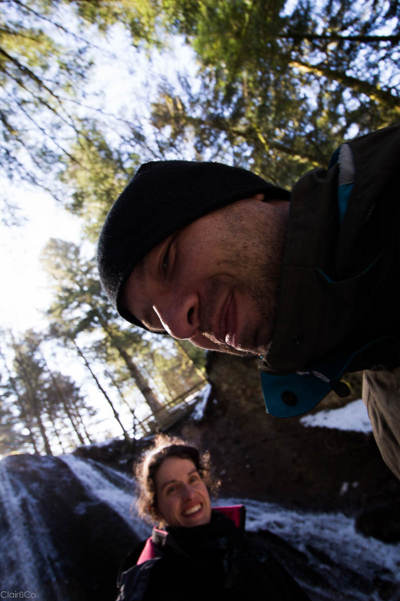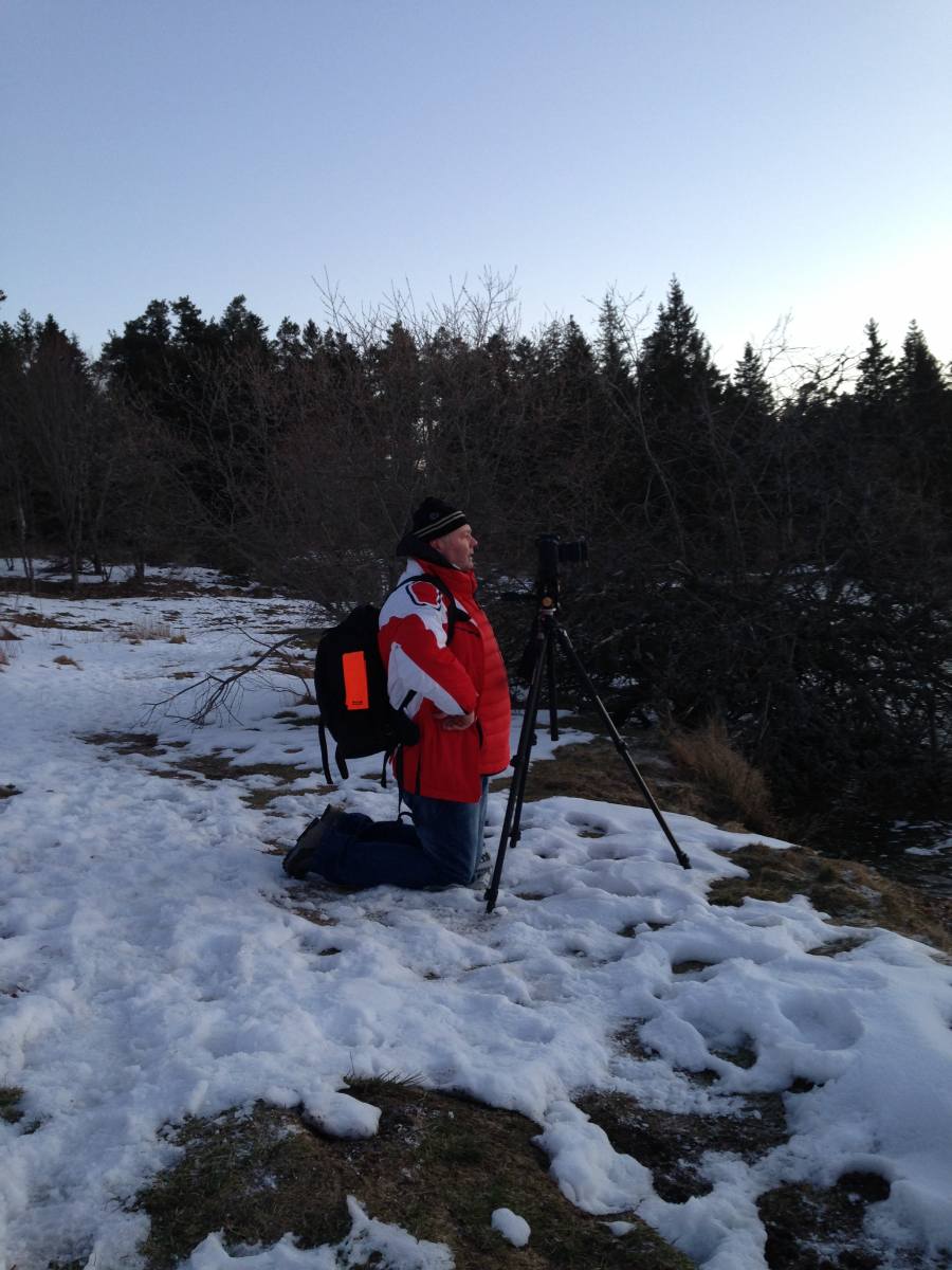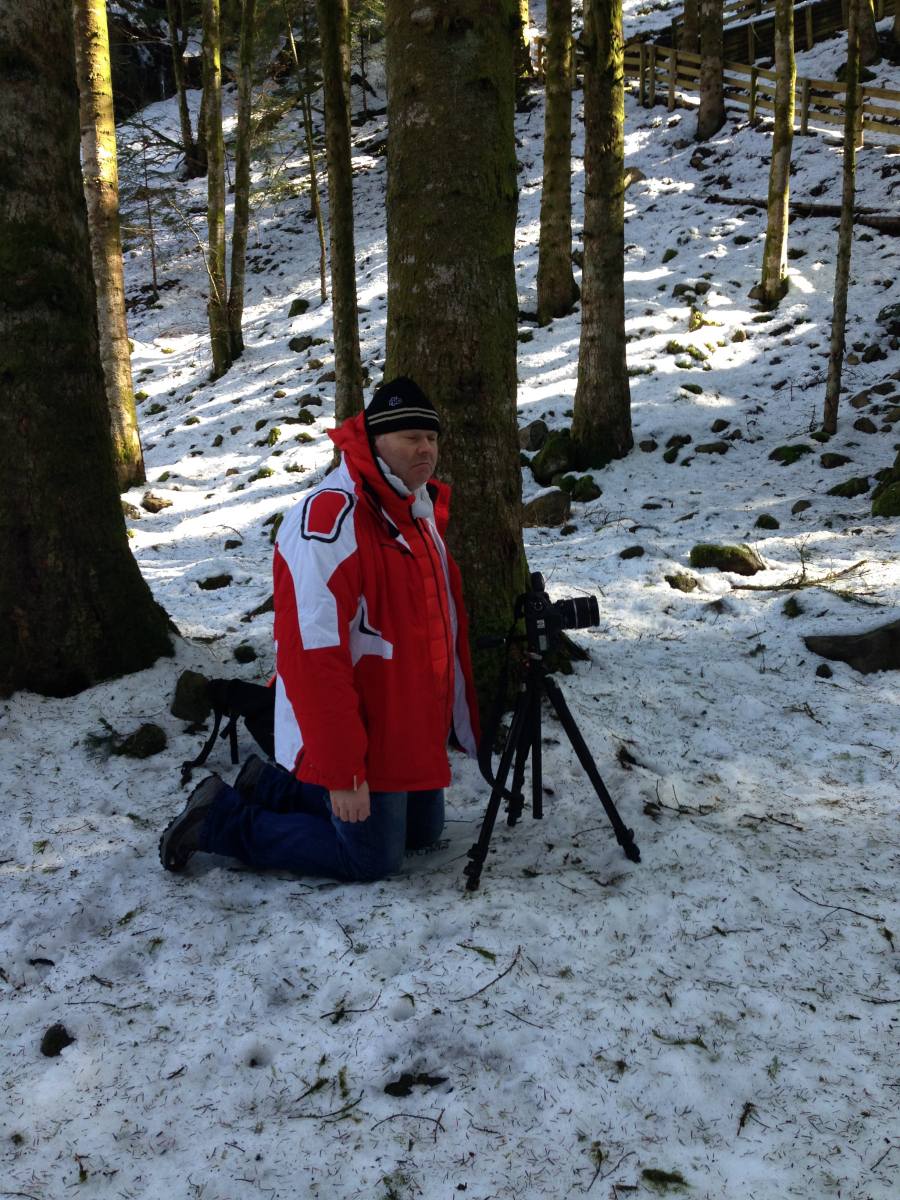 Fabrice à genoux dans la neige en jeans, wouahhh y'a du solide! Aller je vais aller me réchauffer j'ai froid là