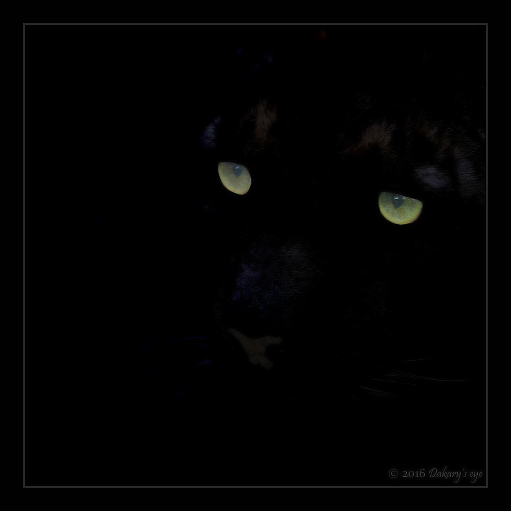 si on considère que le cadre blanc c'est la neige et que les yeux c'est la panthère, alors ok ( c'est très minimaliste )... sinon, elle est plus que carbonique la neige de cette pauv' panthère, elle est carrément carbonisée!!!