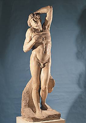 de mémoire, je crois que les statues sont des reproductions d'un des "esclave mourant" de Michel Ange... à verifier...
