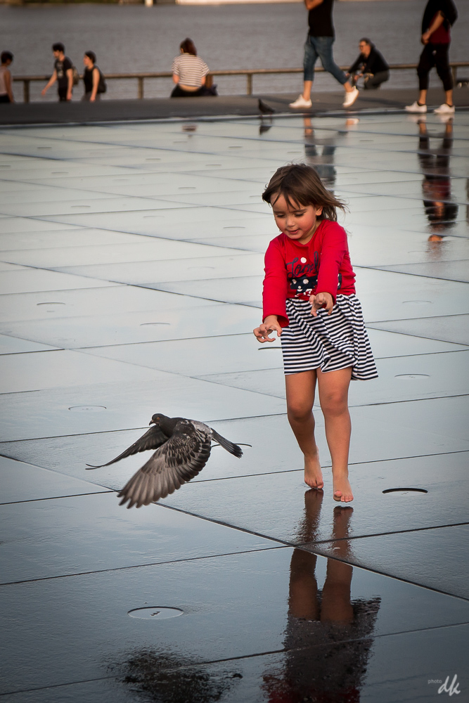 J'aime beaucoup le cadrage "portrait" qui replace la petite fille au centre de l'histoire. Avec le "carré", je trouve que le pigeon prend trop d'importance.