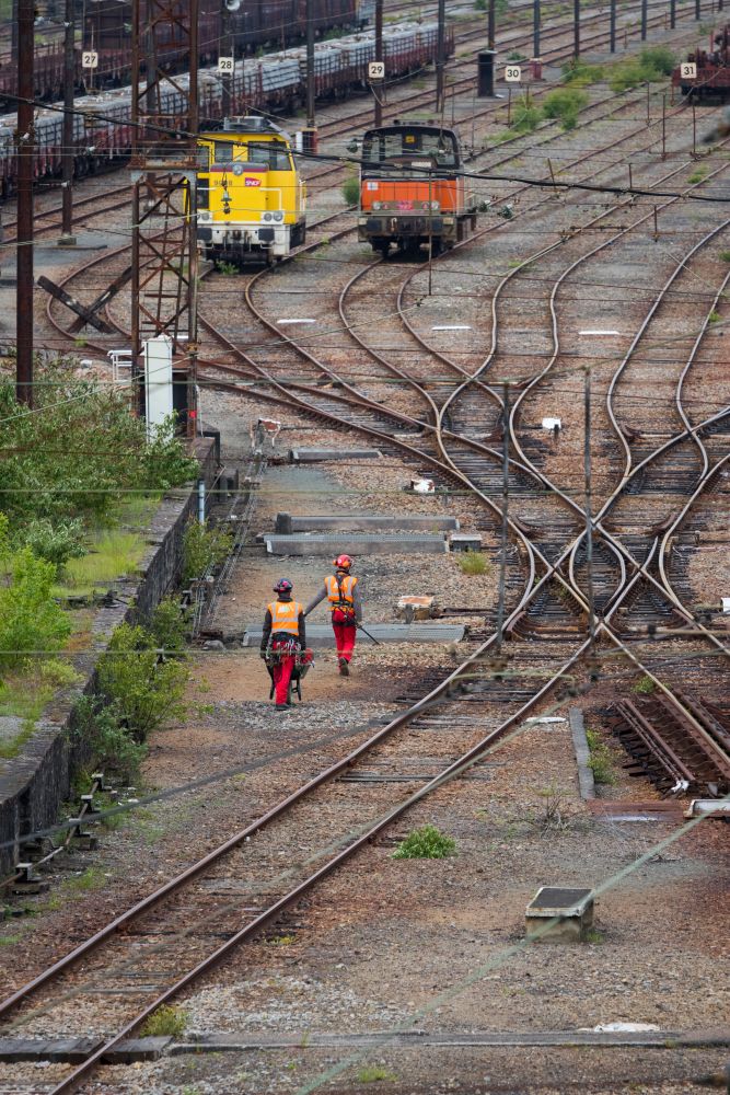 Voici quelques photos prises ce matin au triage de Puy-Imbert lors du remplacement de pylônes d'éclairage vétustes.