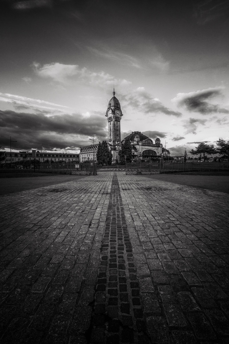 le NB s'y prête bien ! sur la 2 je trouve qu'il y a quand même beaucoup de bitume en bas de la photo... c'est un peu vide... sur la 1, le pavage dirige l'oeil intelligemment vers la gare, on a pas ce genre d'éléments sur la 2...