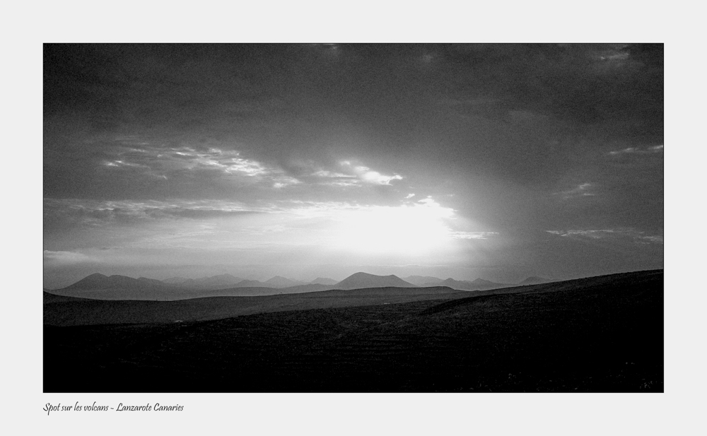 voilà une image que j'avais ratée ! je trouve cette image (presque) très réussie : le 1er plan est très bouché et le grain est vraiment (trop) présent sur le ciel, (pour moi, mais c'est pas la première fois que je le remarque sur tes photos) à tel point que ça le déstructure... la lumière est super en revanche, et les silhouettes des volcans qui se détachent dans la lumière donne un côté très zen et poétique à la photo... encore une fois dommage que sur les transitions de gris entre le clair et le sombre, les grains soient tellement visibles, je pense qu'une transition douce dans les gris aurait terminé de me convaincre
