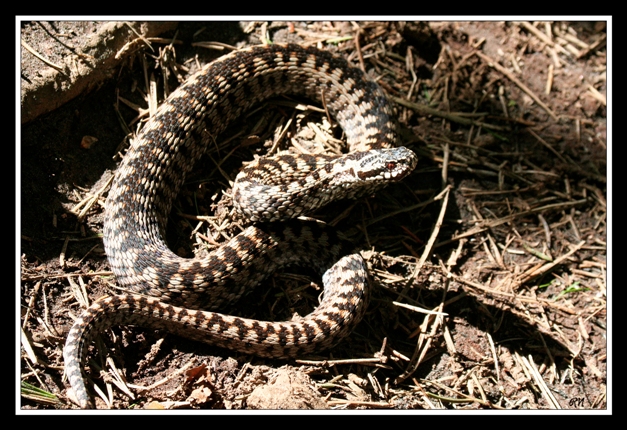 hé ben renard en tant que grand amateur de reptiles, je tient à te tirer mon chapeau pour ces clichés .....les premieres ne sont pas terribles (un peu trop de flou) mais on voit bien que cette vipere ete sur la defensive et prete a attaquer pour ce defendre ......jolie coup donc j'aurais aimé etre là avec vous pour pouvoir l'attraper de mes mains .......les trois dernieres niveau lumiere sont beaucoup mieux.....mais c'est vrai comme le dit si bien seb que la vue en plongée ne la met pas trop en valeur ......cette vipere est réputée pour etre assez agressive envers les individus qui rentre sur son territoire ( et croyez moi je m'y connais)