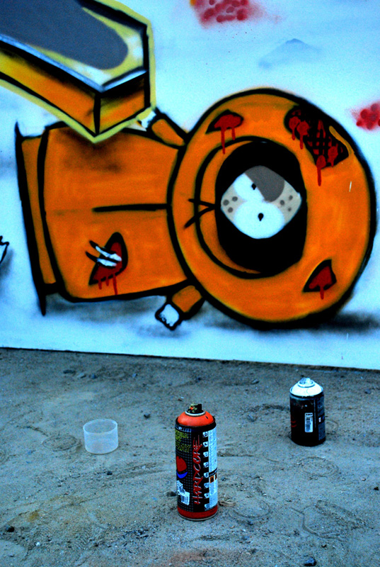arff le graff.....pas évident a bien mettre en valeur hein.....perso j'aime bien la 8 pour la profondeur qu'elle amène ....comme le dit fred c'est comme prendre un tableau en photo sauf ue là, si on est present au moment ou le graffeur pose y'as plus de truc a montrer du coup!!!!