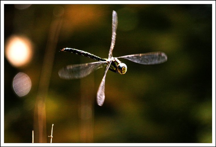3 heures de shoots - Canon 50 D + 120/400 : environ 2,5 kg - à main levée l'animal est trop mobile et trop rapide pour un trepied et même un monopode - map manuel l'animal est trop petit pour être capté par l'AF - les phases de vol stationnaire ne dépassent pas 3 secondes donc map manuelle très difficile, voire approximative, même avec un prérèglage - difficulté à garder l'insecte dans le viseur , ... je ne sais pas si j'ai fait le tour de tous les pb rencontrés mais j'avoue que 15 photos gardée sur plus de 350 shoots, je suis encore satisfait ...