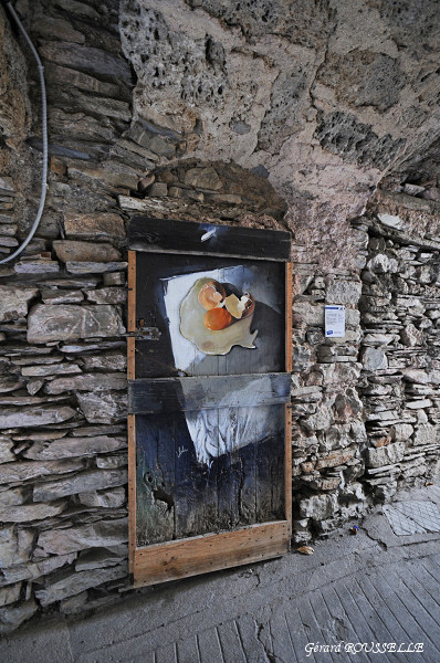 oui quelques unes ,mais pas mal de déchet aussi ,j'ai arrêter de compter les portes peintes je crois que j'en étais a 84,en tout cas c'est un superbe village moyenâgeux tout en pente,a flanc de montagne,et presque tout en passage vouter