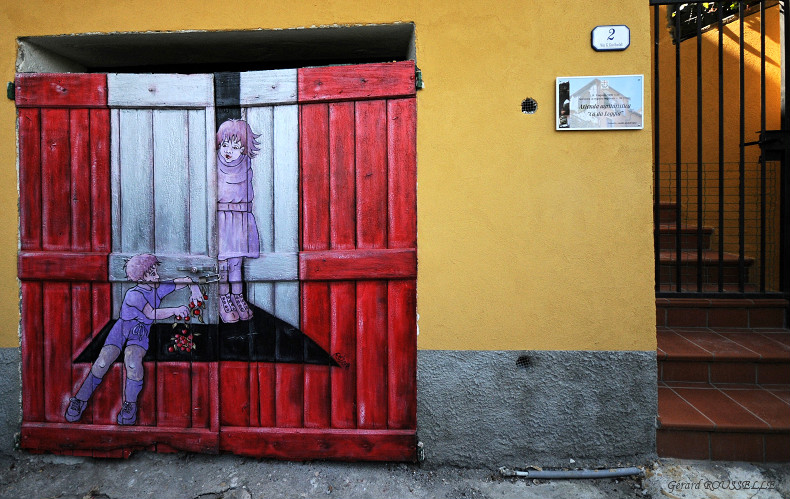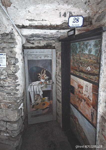 oui quelques unes ,mais pas mal de déchet aussi ,j'ai arrêter de compter les portes peintes je crois que j'en étais a 84,en tout cas c'est un superbe village moyenâgeux tout en pente,a flanc de montagne,et presque tout en passage vouter