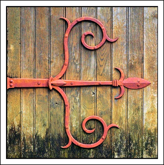 Très belle pièce effectivement, avec un curieux faux effet de percpective, dû sans doute au fait que la penture n'est pas tout à fait perpendiculaire aux lames de bois ? tu aurrais peut-être pû la saturer un peu plus pour essayer de rehausser l'aspect rouillé, mais c'est une question de goût.