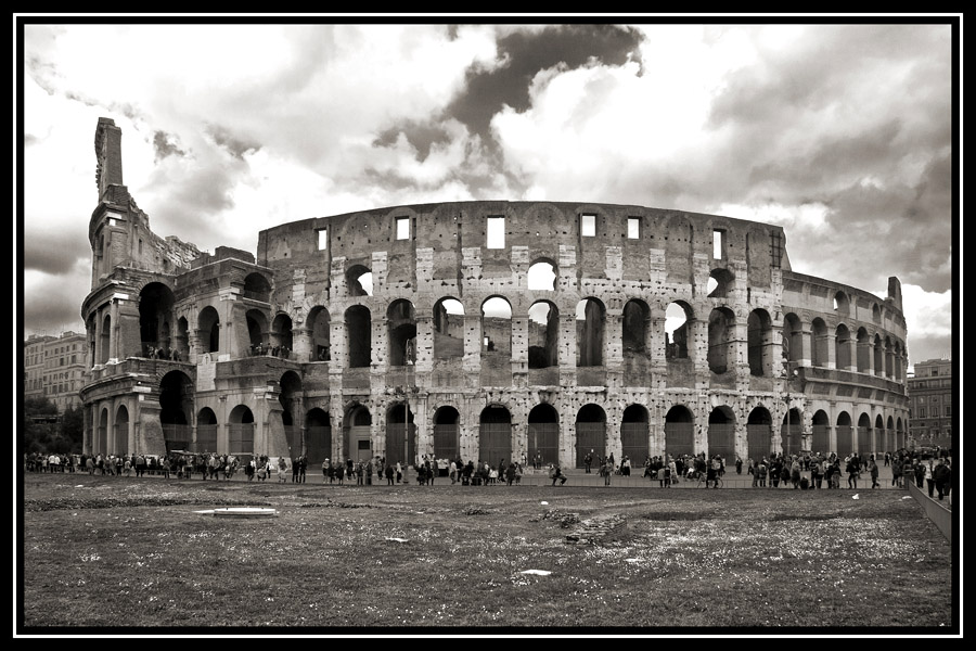 La deuxième série, celle dont font partie ces deux photos, c'est la Rome antique, celle des monuments anciens, de l'histoire, de la rudesse des mœurs, de la violence omniprésente (même si c'est là que se trouvent les fondements de notre société), et pour faire ressentir çà, le noir et blanc et les forts contrastes me paraissent mieux adaptés.