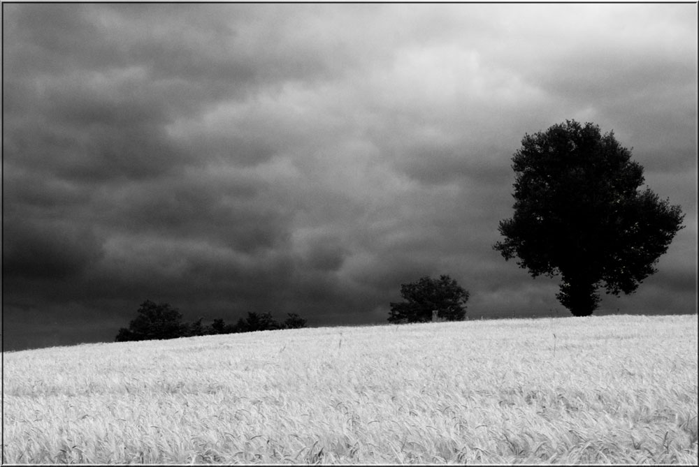 Oui , bien entendu , tu as parfaitement raison pour le cadrage , j'étais parti pour un tiers ciel , deux tiers champs , mais finalement , le champs n'était pas assez homogène , d'ou mon moitié moitié insatisfaisant .