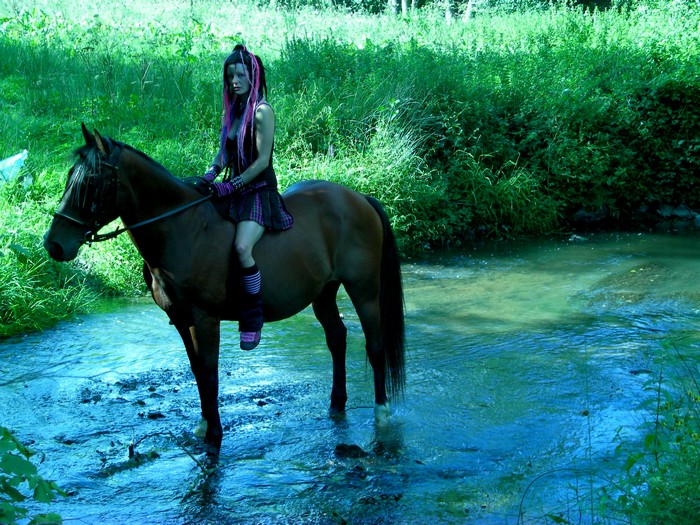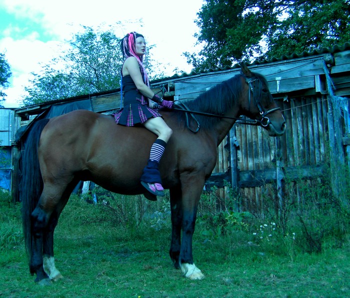 Sur la 2, le cadrage me laisse perplexe ??? de surcroît, ton sujet est nettement sous exposé ; sur la 1ère, le cadrage est plus académique mais je trouve l'ensemble très figé, qui manque de dynamique et je trouve la contre-plongée gênante ; en fait, sur l'ensemble de cette série d'images, j'ai l'impression que tu as eu du mal à choisir, du modèle ou du cheval, comme thème central, et je cherche un point d'accroche : si c'est le modèle et son style, alors le cheval est trop présent, si c'est le cheval, le modèle a trop de caractère, et si c'est "les deux mon capitaine", l'ensemble cavalier/monture a besoin de bouger un peu.