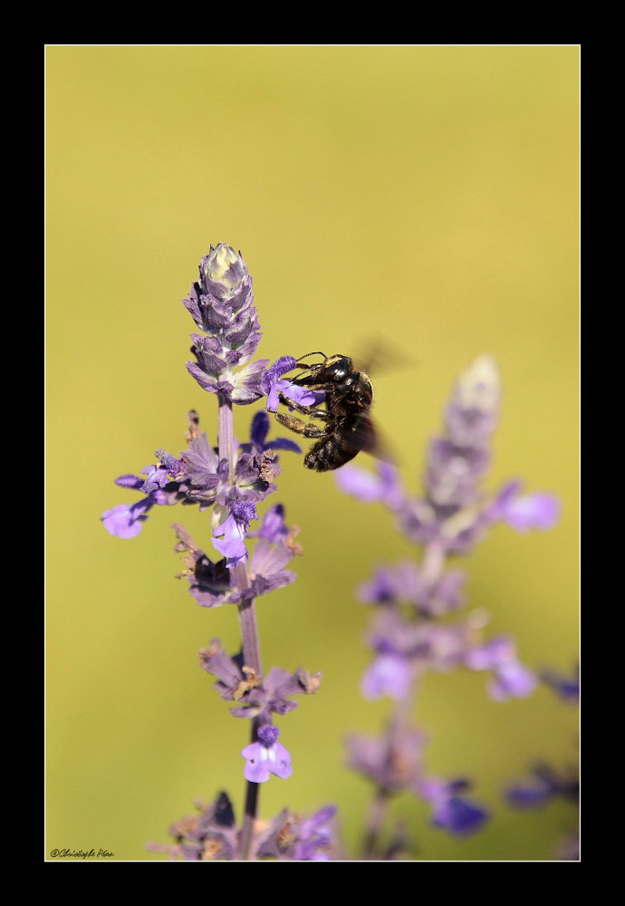 Très joli flou d'arrière plan, qui fait bien ressortir la lavande ; pour l'insecte, je le vois souvent, mais je ne connais pas son nom, ... je chercherais et je te dirais.