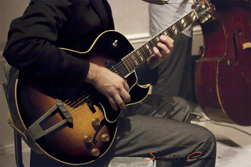 C'était mon tout premier concert, et il faudra être indulgents. D'autant que la lumière... ben il n'y en avait pas beaucoup et que mon vieux 20D et mes objectifs qui n'ouvrent pas trop ont montré leurs limites. Les résultats sont bien meilleurs sur les deux concerts suivants, mais je n'ai pas encore terminé la post-prod donc je les publierai plus tard.