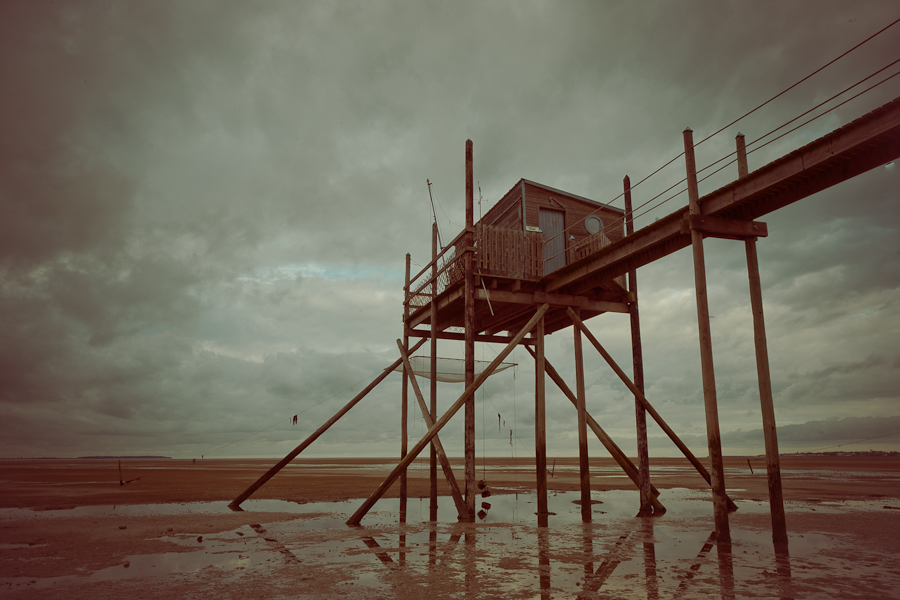 j'aime bien le coté ambiance du traitement,par contre je me serais volontiers du poteau en 1er plan a droite,et j'eusse mis le ponton dans l'angle droit,mais de manière a laisser du ciel jusqu'au bout de l'angle droit.