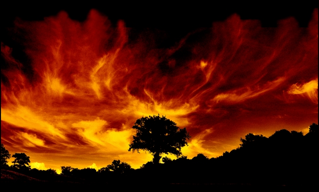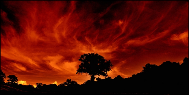 Je ne parlais pas des nuages clairs mais des trainées "dorées" qu'il y a en dessous des arbres en bas à gauche sur fond noir.