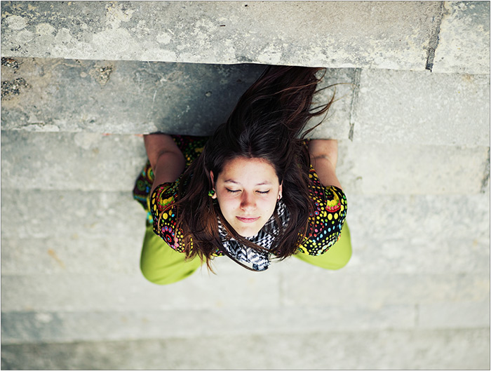 J'aime bien la dernière proposition d'aurelien. Je trouve que l'intérêt est du coup, d'être juste un photo rigolote ( l'expression de la fille et le cadre ambigue et bucolique ). Je veux bien voir les fameuses autres photo plus délire qui peuvent peut être plus correspondre au caractère de cette jeune fille... en tout cas, je trouve que celle où elle sourit ( la 3 ) est plus interessante que les pseudo photo mode.