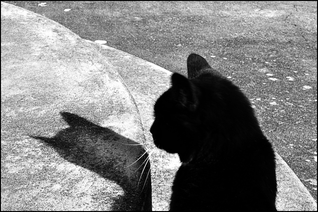 Ne me demande pas pourquoi ... mais je préfère très nettement celle ci à celles des chevaux ; c'est peut-être seulement psychologique, une relation entre le chat et l'ombre ; je pense surtout que ta lumière met bien en valeur son regard.