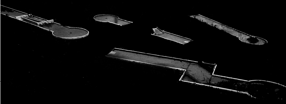 Tentative de rendu des contrastes et effets de pluie sur le golf miniature près du quorum.