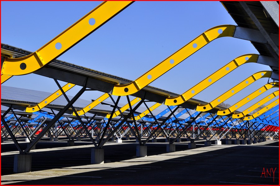 Des panneaux solaires qui recouvrent les nouveaux parkings ( immenses ! ) de Bordeaux-Lac.