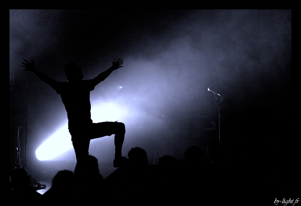 Une grande préférence pour la deuxième, avec un cadrage qui marche bien certes déséquilibré sur la gauche mais ça me plait. Il y a du détails de partout, et la raie de lumière qui méne droit sur le chanteur qui est top.