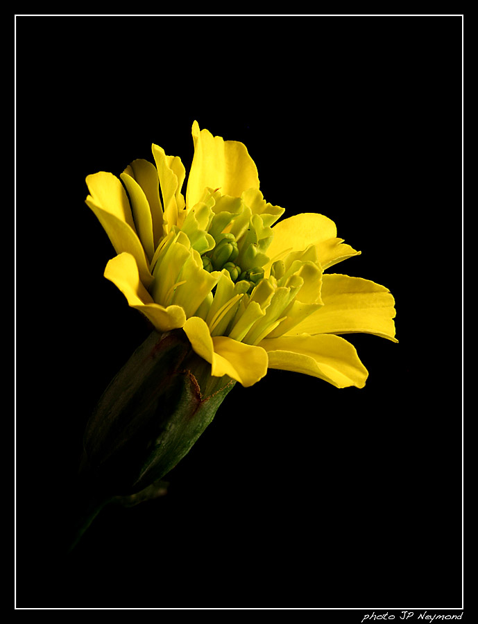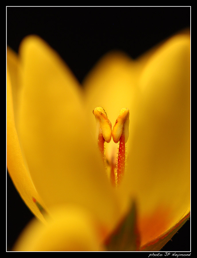 je me suis aperçu, en observant cette fleur pourtant pourtant petite avec 3 bagues allonges, qu'elle était truffée d'habitants jaunes très agités, mesurant au moins... 1/10mm...