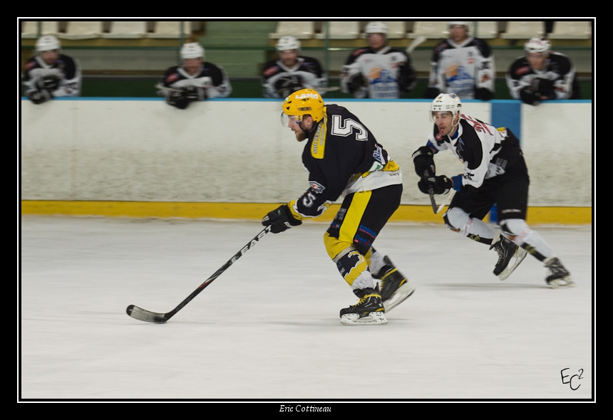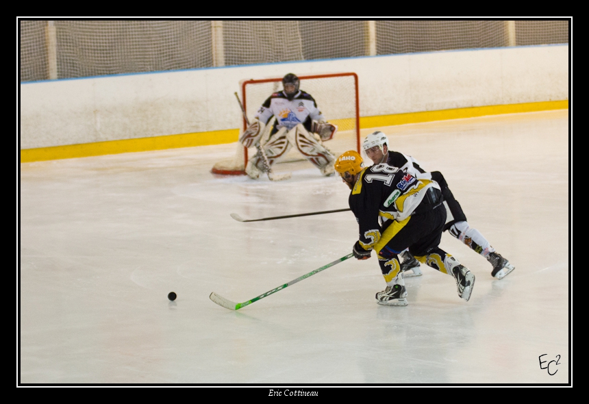 Bon, c'est un exercice intéressant mais compliqué. Ca va vite, ils partent dans tous les sens, le palet est petit. Pas facile de sortir des photos correctes. En fin de match, je commençais un peu à comprendre la stratégie globale, enfin je pense