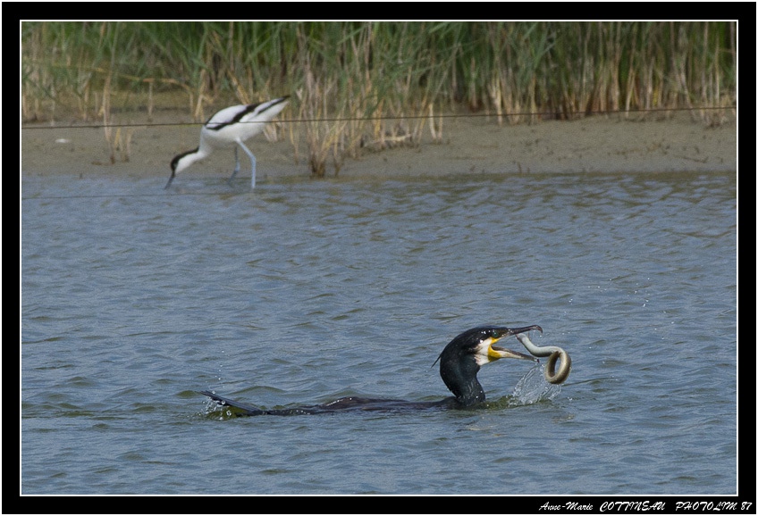 J'ai fait cette sortie avec Eric. alors bon nombre de mes photos sont à peu près identiques. Toutefois je vous propose le repas d'un cormoran. En moins de 30 secondes d'un combat inégal, il engloutit sa proie .
