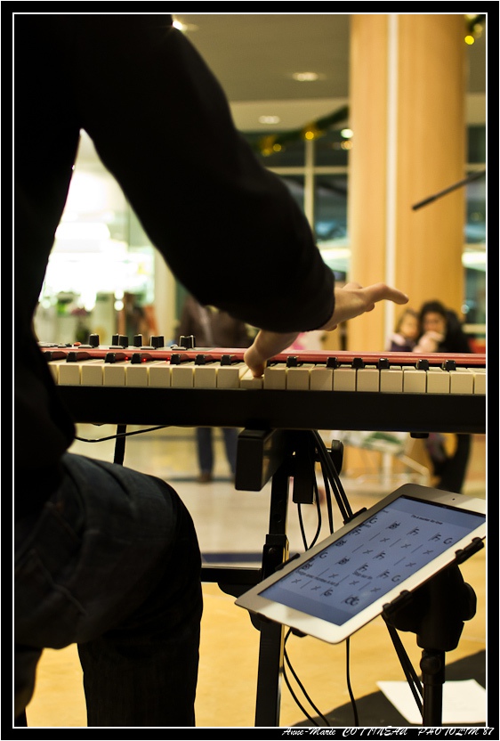 Samedi, fin d'après-midi à Leclerc, Show-case de OFF SIX avec Stéphane Rocher au clavier