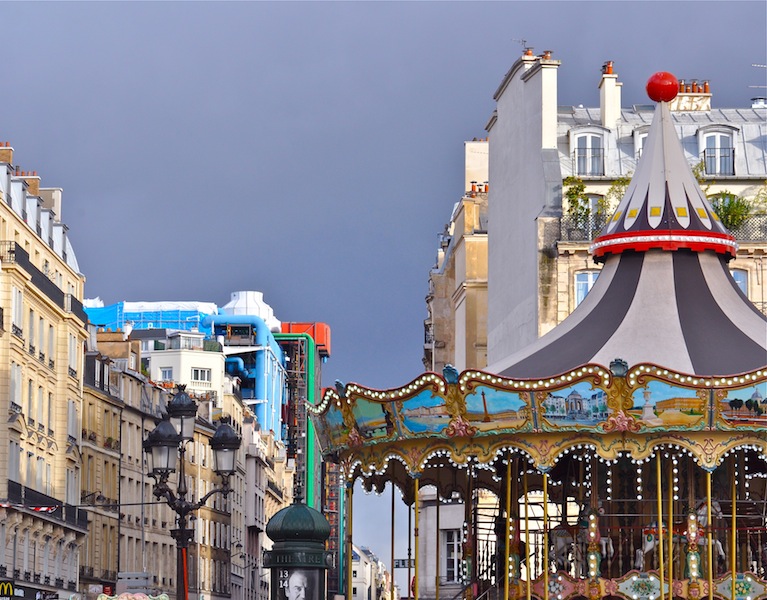 Un coin de Beaubourg dans son environnement, une vue de la place de l'hôtel de ville pour ses couleurs de fête foraine!