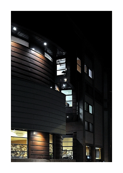 Par contre, je tiens à conserver la dernière; c'est la chute de mon histoire, le moment où tout bascule, le moment où l'intérieur qui était vu de l'intérieur devient visible de l'extérieur avec un petit bonhomme isolé qui renforce la vacuité de cet immeuble qui ressemble quelque part à un robot.
