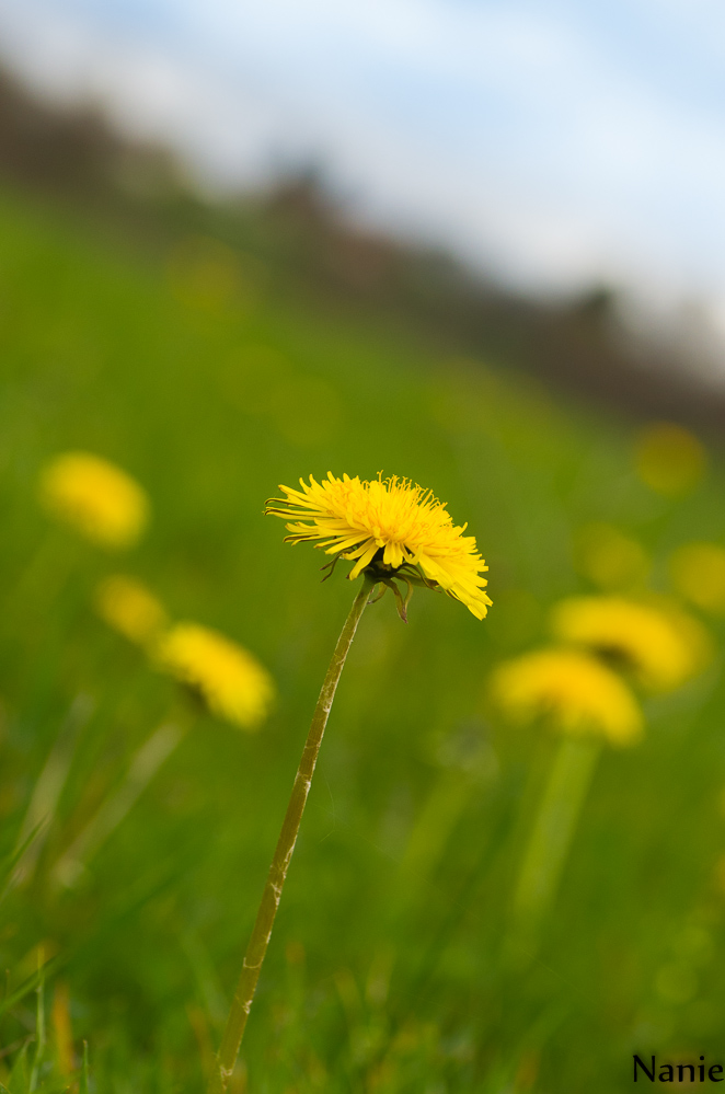 Ca donne une impression qu'un pissenlit prend la parole sur une audience de pissenlits ou alors c'est elle qui mène une troupe, en tous cas c'est bien elle qui domine les autres à travers sa posture bien droite tête haute avec un bokeh qui renforce sa position.