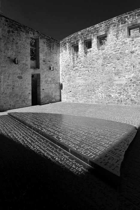 Bon alors oui pour pont du Dognon,et non pour"musée Champollion"il s'agit exactement de la "Place des Ecritures" a Figeac et qui représente un agrandissement de la "Pierre de Rosette" déchiffrée par Champolion.:)