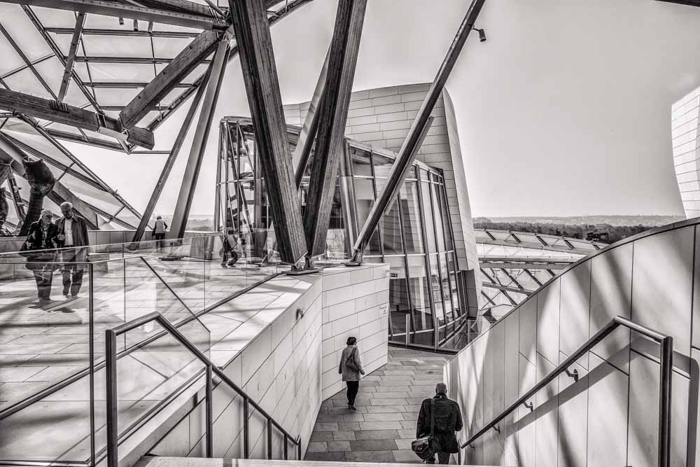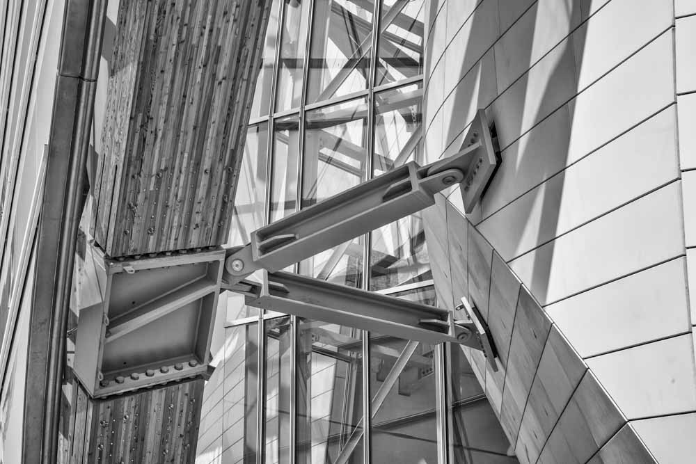 L'oeuvre de Frank Gehry a de l'allure, un monstre de beauté, prouesse technologique. Un immense bateau de verre. La question COULEUR ou NOIR ET BLANC ?