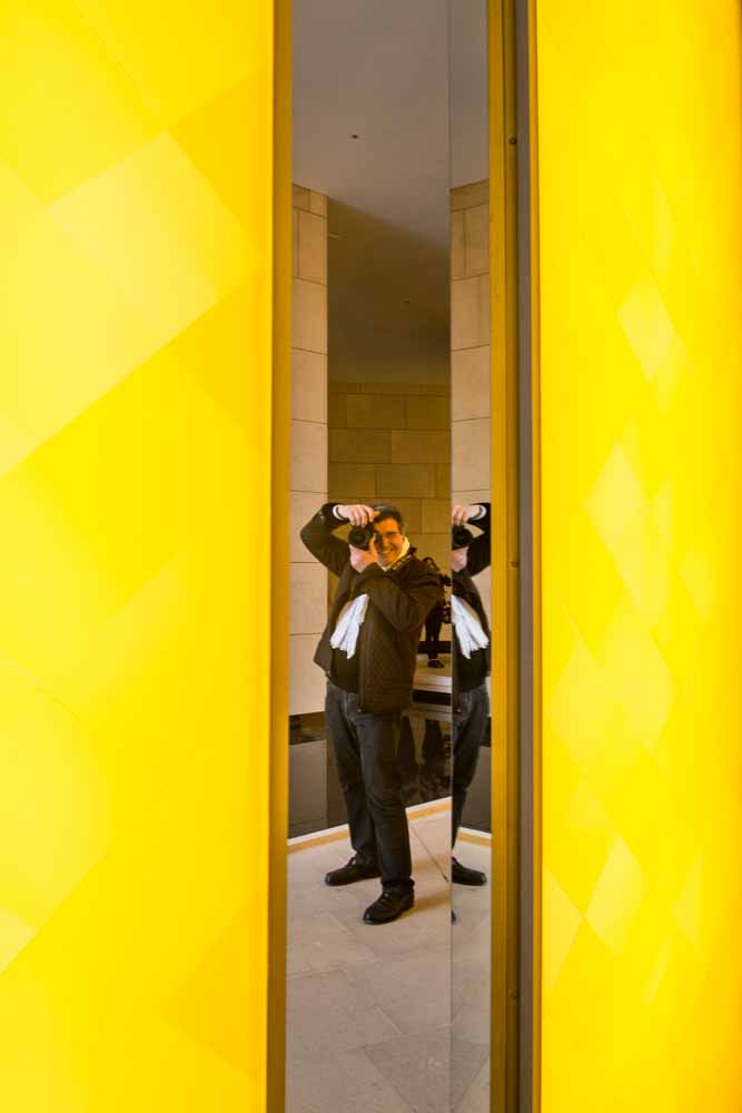 Les oeuvres d'Olafur Eliasson , panneau jaunes vifs ne sont éligibles qu'en couleur. Je vous ajoute la photo de l'écolier persécuté de Maurizio Cattelan, plus qq images de plus et un autoportrait, modeste avec ça