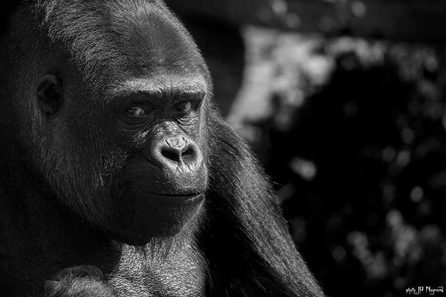 les grands singes sont, eux, un peu mois accessibles. Les Bonobos et Chimpanzés parce qu'ils sont agressifs, donc dangereux, les Gorilles parce qu'un Dos Argenté pèse tout de même 250kg et bien que totalement inoffensif et dénué de méchanceté, son "affection" pourrait tout même laisser quelques marques à ses groupies... mais ton objectif permet tout de même de faire des portraits "en pieds" intéressants.
