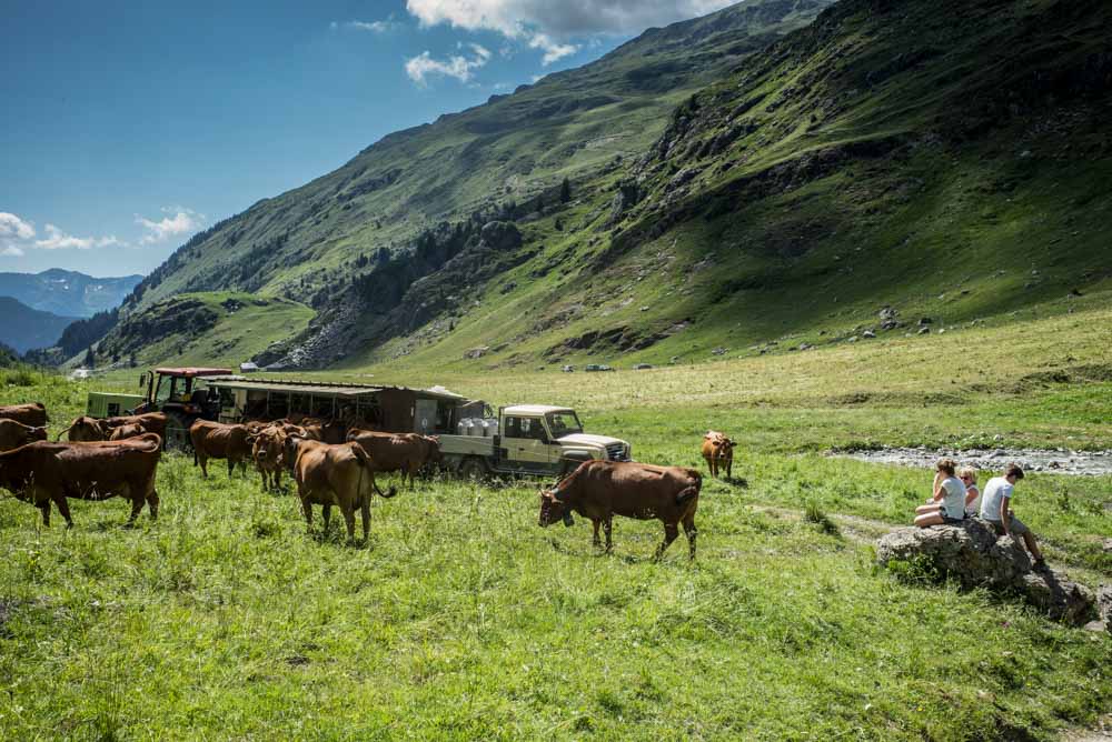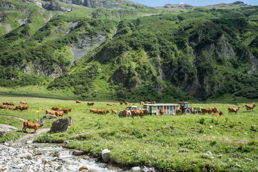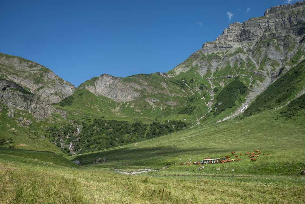 Les animaux une fois traits passent de l'autre coté. Le tout dans un paysage merveilleux. Nous sommes sur le plateau de Gittaz en plein Beaufortain.