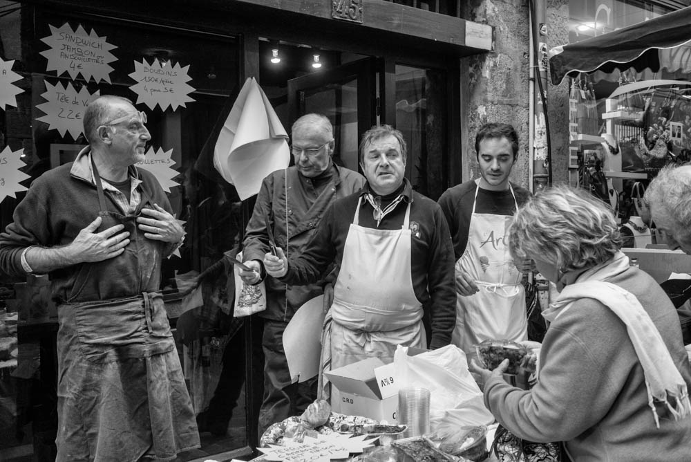 Certains habitués reconnaitront les figures emblématiques de la gastronomie : Pascal et son grand couteau, Josette et sa célèbre tripe à la sauce tortue, François et son acolyte membre du BSL et photographe averti.