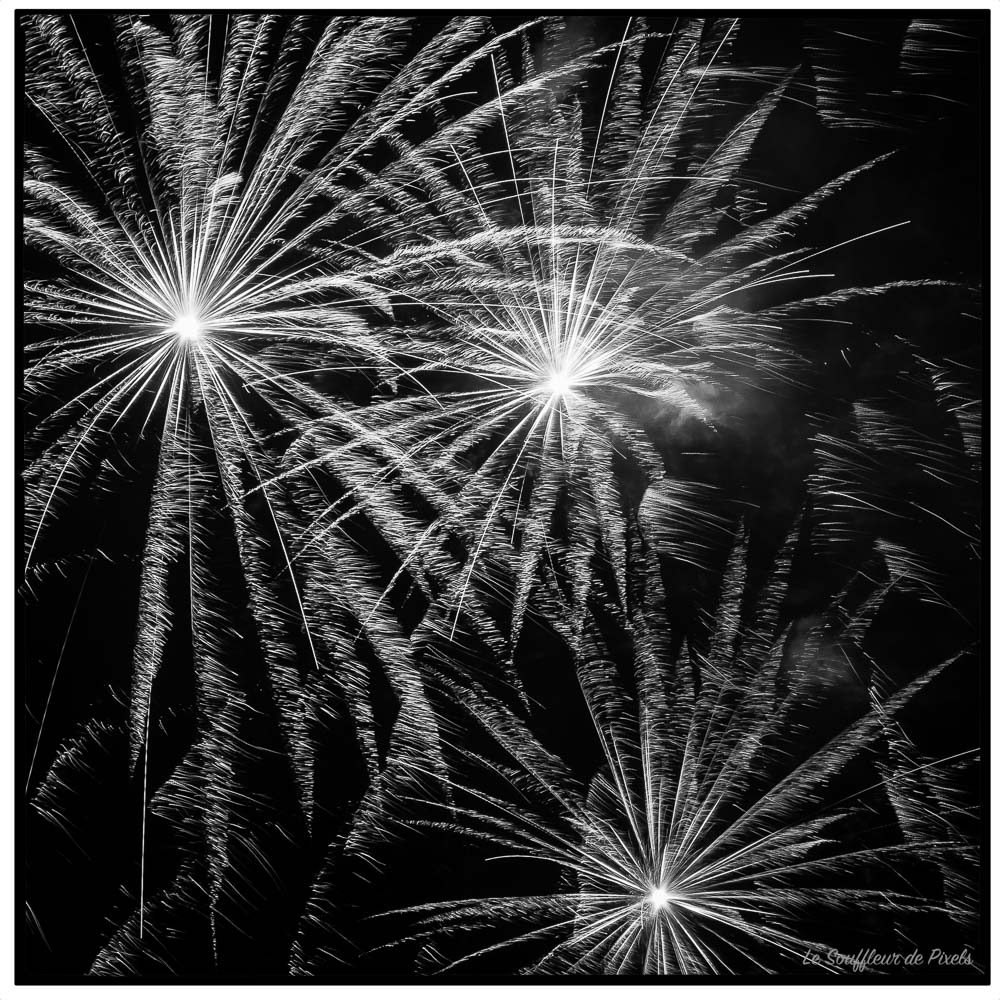 La question est : La conversion en noir et blanc et le format carré apportent-ils un plus au spectacle du feu d'artifices ? La réponse vous appartient cher(es)s photolimien(ne)s.