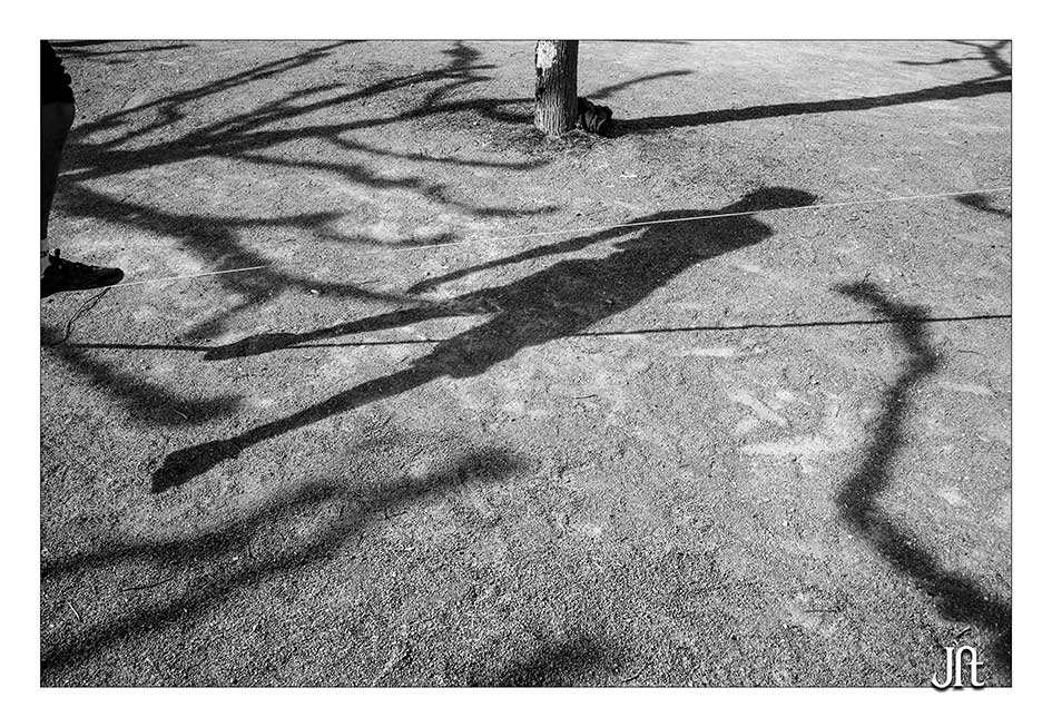 Par contre, j'ai laissé l'amorce du corps physique parce qu'elle permet - en tout cas je l'ai cru - un dialogue, un autre rapport, du spectateur avec l'ombre et la scène et resitue la scène dans un contexte "connu", plus identifiable et commun ... (il me semble assez facile d'éliminer cette amorce de jambe, sans recadrage)