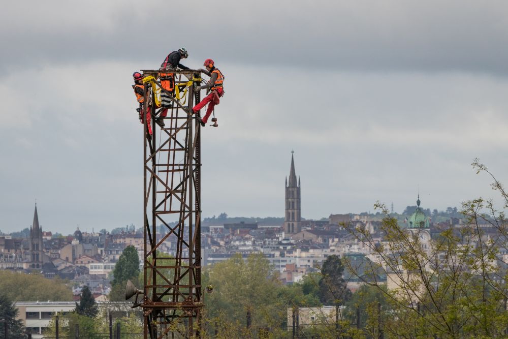 Voici quelques photos prises ce matin au triage de Puy-Imbert lors du remplacement de pylônes d'éclairage vétustes.