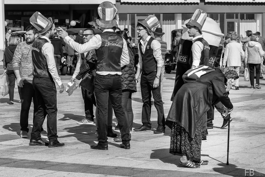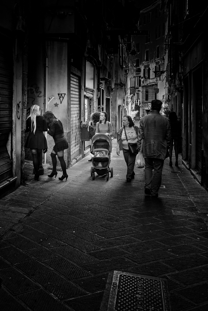 pas la peine de recentrer et de diriger le regard sur ton sujet par des artifices, il fallait zoomer si tu était trop loin,la on sent que t'as eu peur de la faire(remarque j'ai déja eu des ennuis avec ces dames!!) je sis que c'est pas facile la photo de rue ,faut de la pratique et de la pratique ainsi que de la pratique