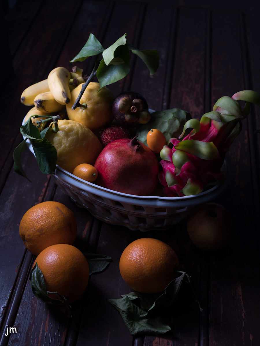 Merci Isabelle pour tes observations. Ce sont des images caravagesques que je souhaite obtenir mais pour les fruits exotiques, je te concède que Grand Frais n'était pas né. La prochaine série je mets une tête coupée dans un plateau