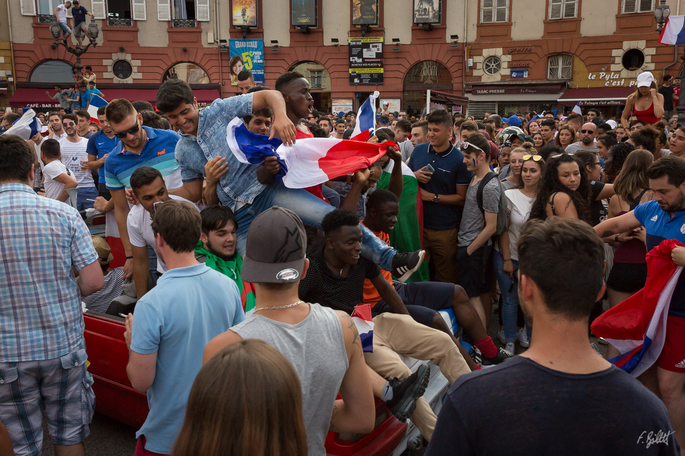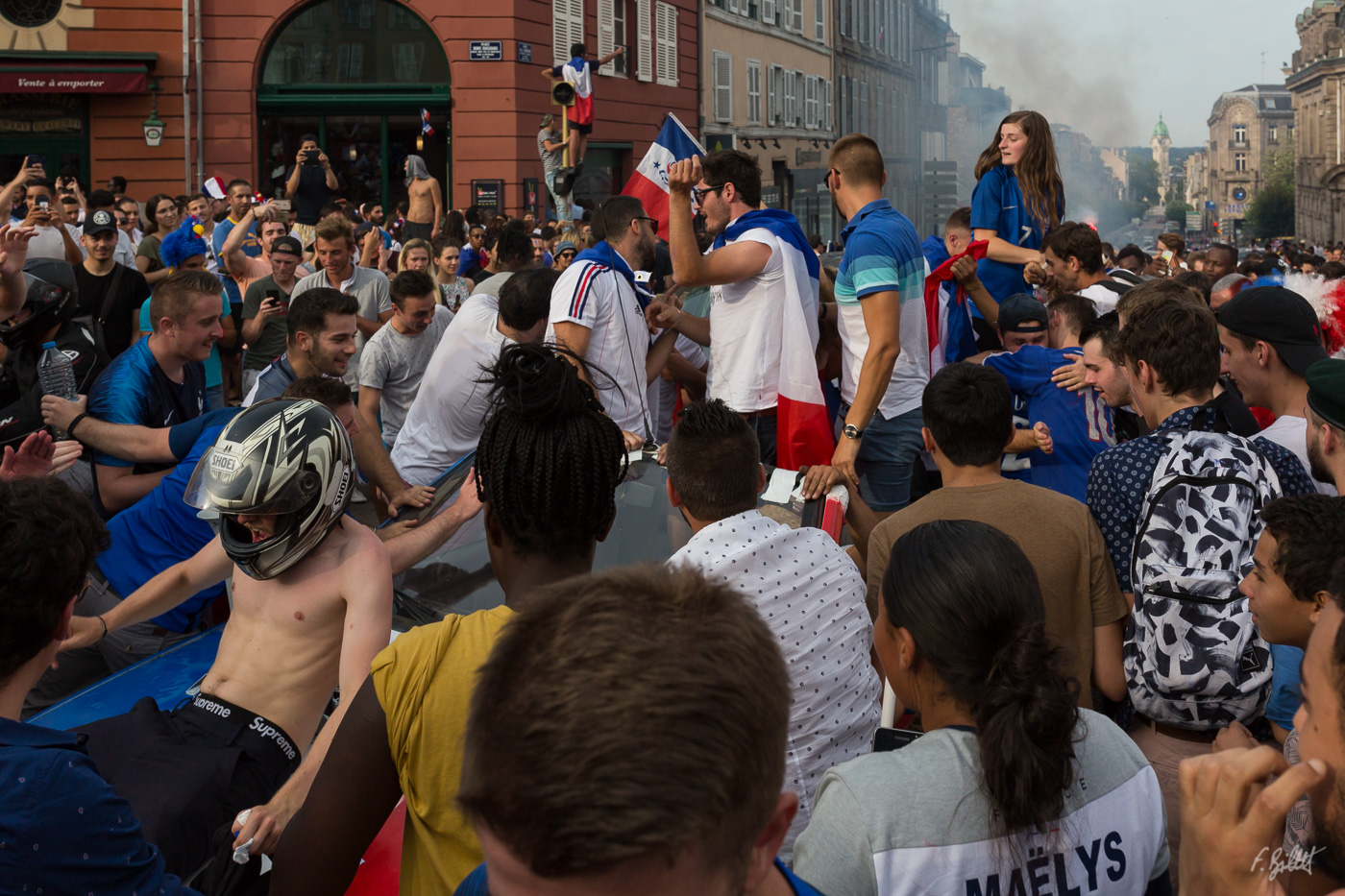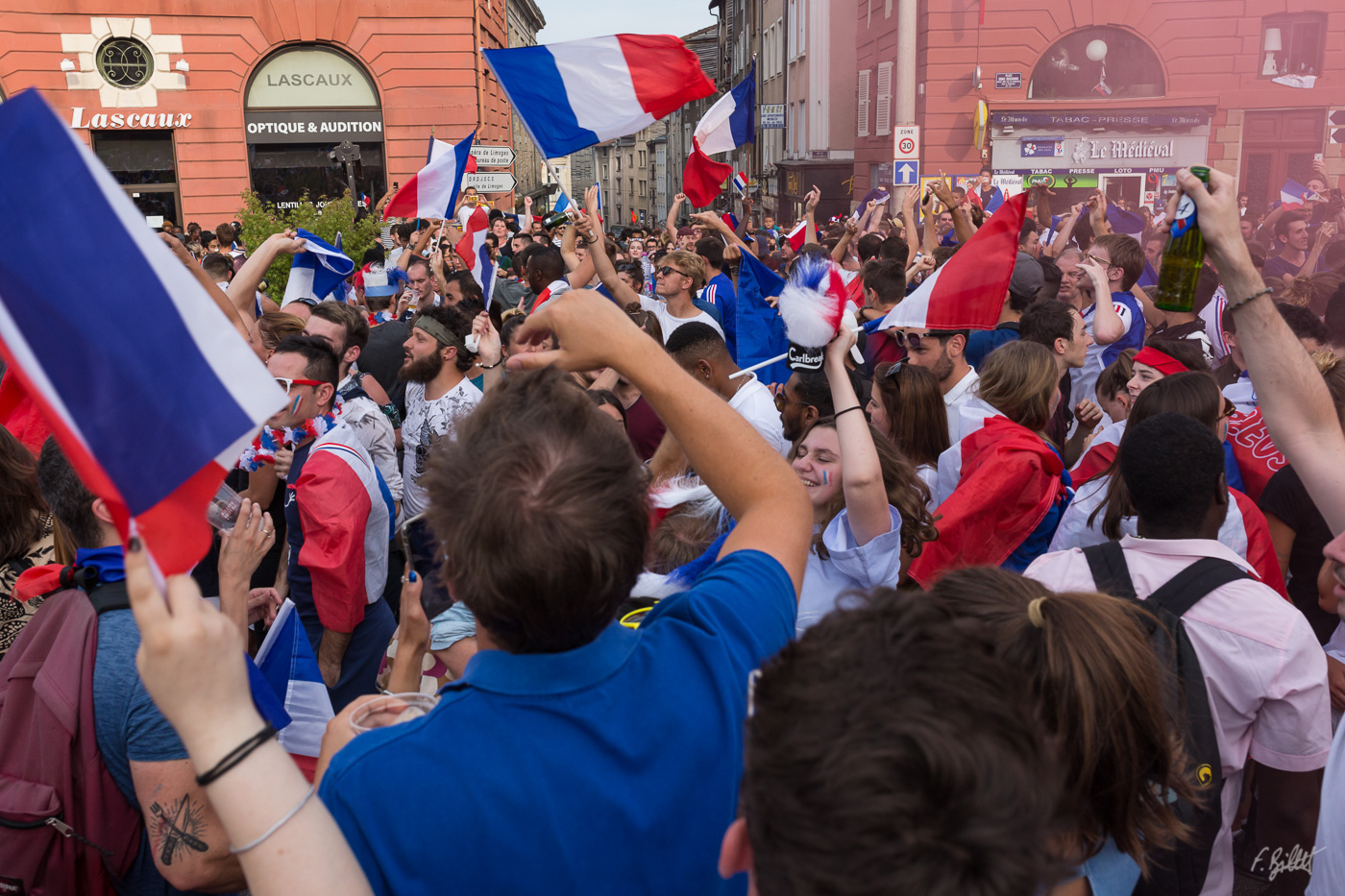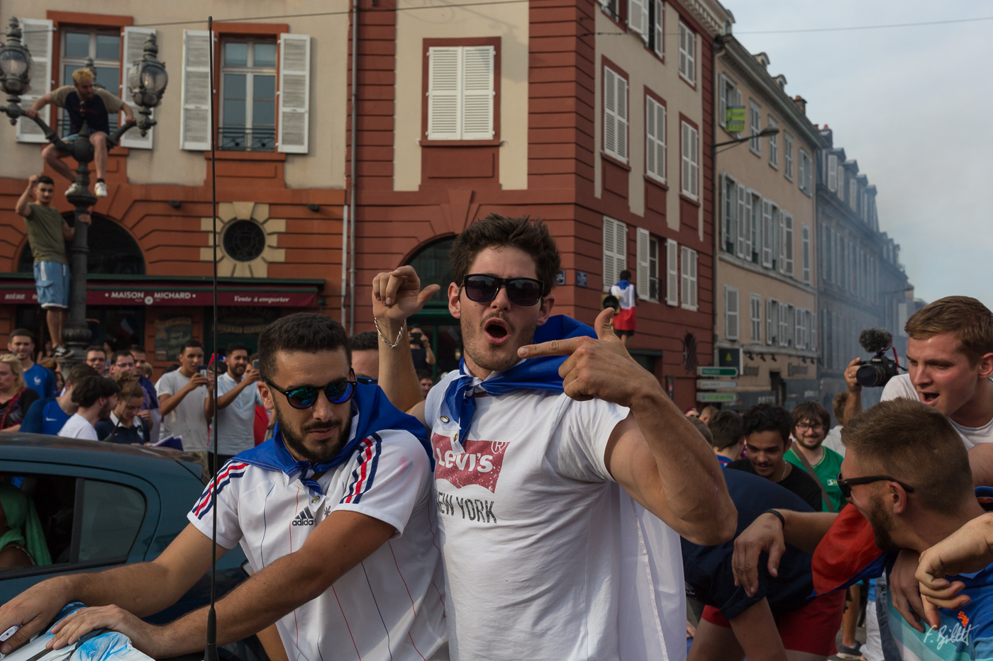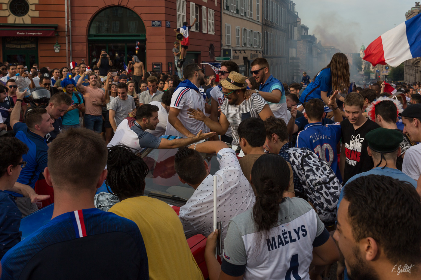 Je ne suis pas spécialement fan de foot, mais j'avais déjà vécu cette ferveur "au cœur de la foule" en 98 et c'était juste impossible pour moi de rester à la maison à regarder la tv. L'appareil photo n'a été qu'un prétexte...