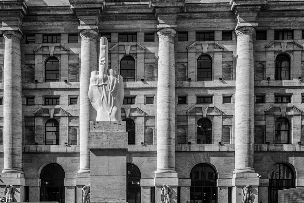 Ah oui bien sur. Toi c'est le pouce voici le majeur un peu provocateur qui fait 6 tonnes sur la place de la bourse imaginé par Maurisio Cattalan... Non ce n'est pas ce que l on pense mais la main d'Hadrien qui a perdu des doigts...