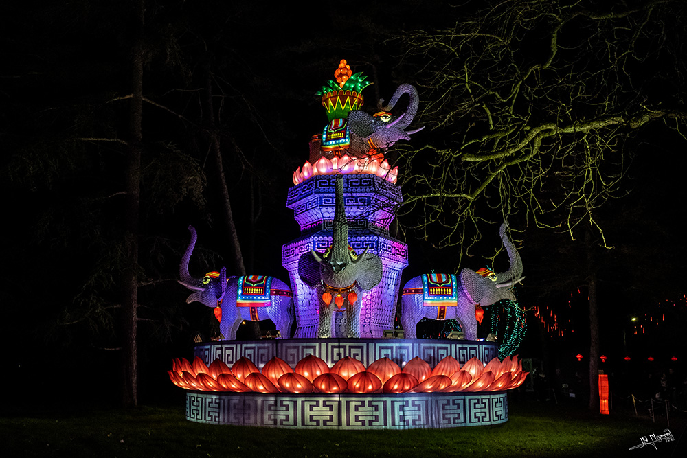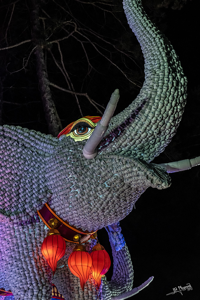 Cette "lanterne aux éléphants"... rendant hommage aux transporteur de la route de la soie, est faite d'assiettes en porcelaine pour le support et de tasses à thé pour les éléphants... combien, personne n'a pu me donner la réponse...