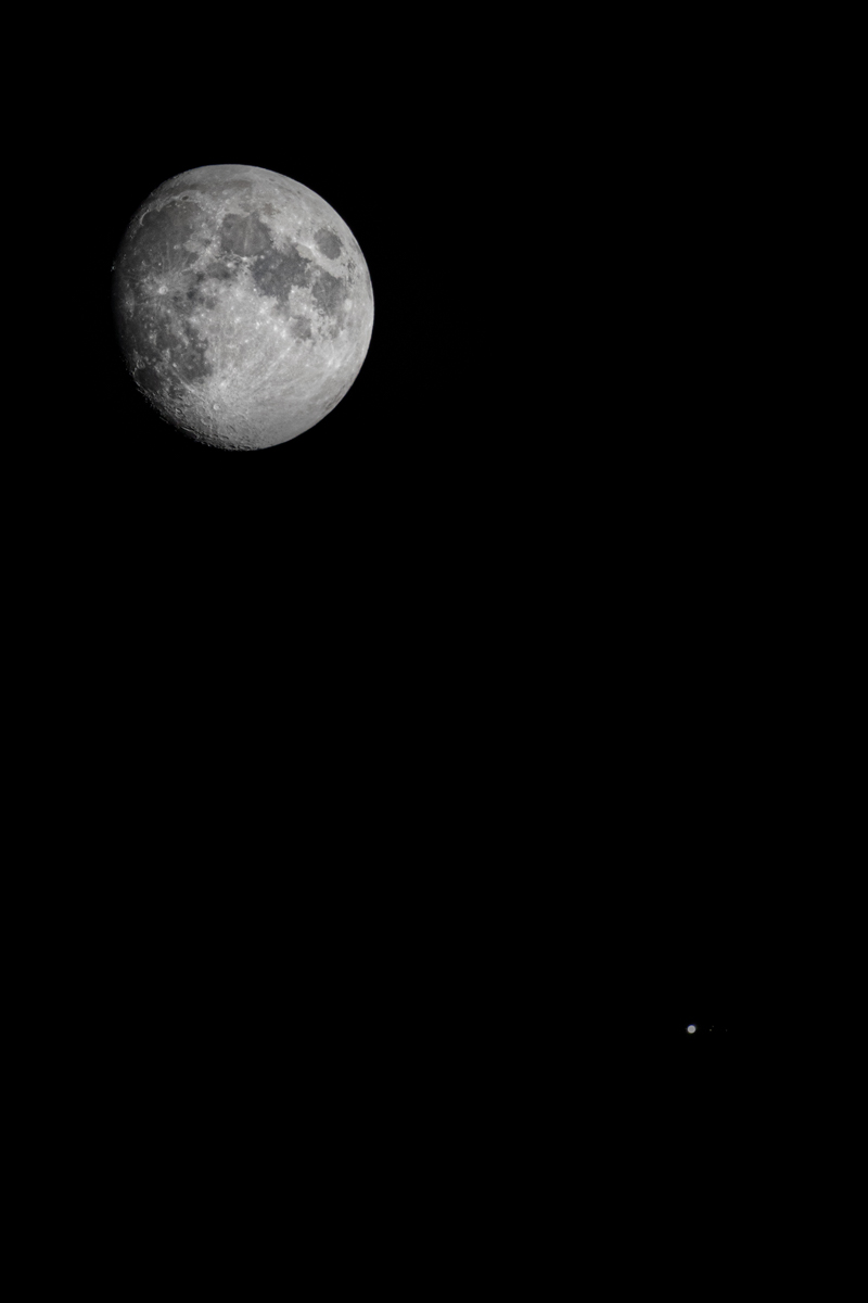 Pendant que les feux d'artifices éclataient un peu partout, la Lune faisait une visite de courtoisie à Jupiter.