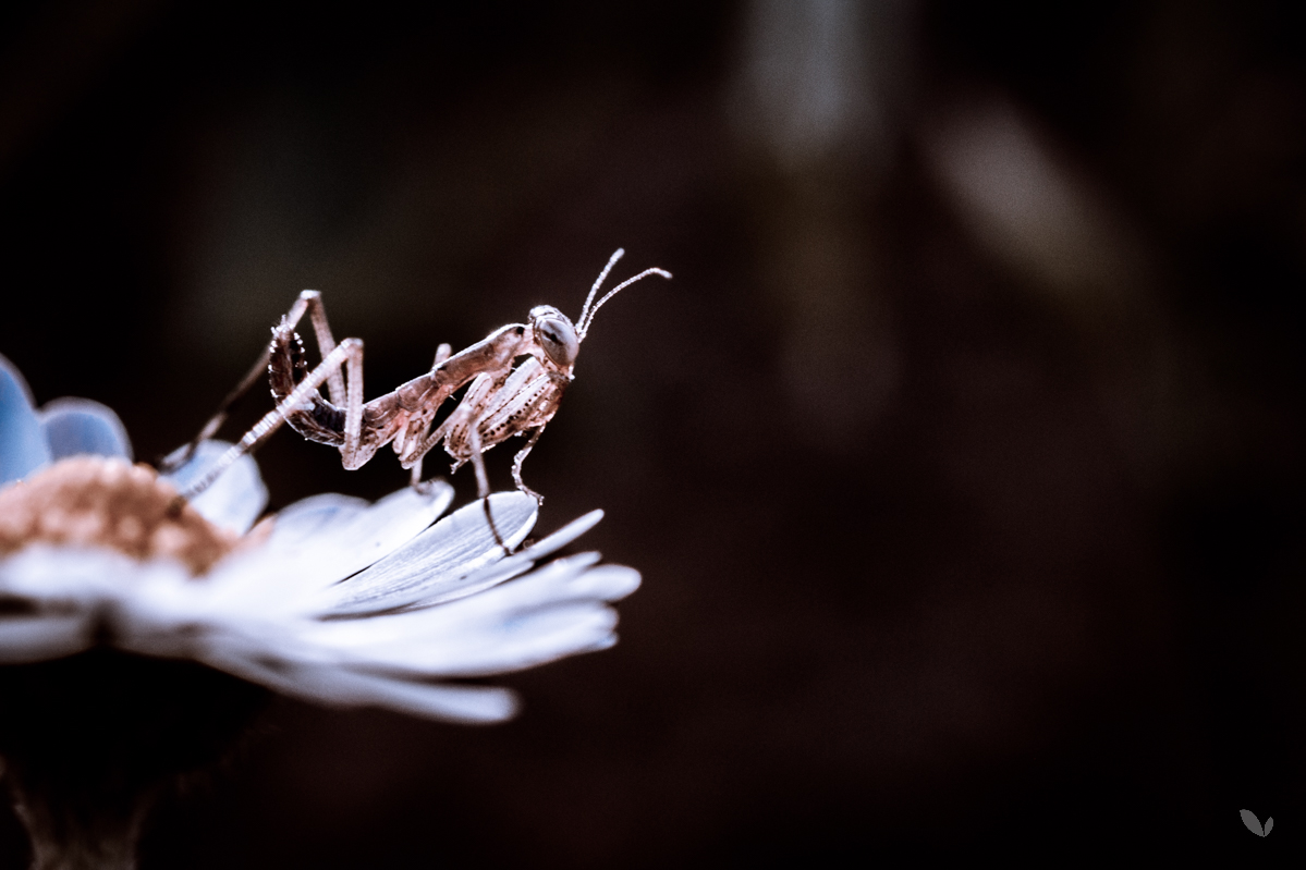 Pas facile à trouver, mais rigolos à photographier, j'ai essayé plusieurs traitements dans l'espoir de mettre en valeur ce petit bébé mante-religieuse.