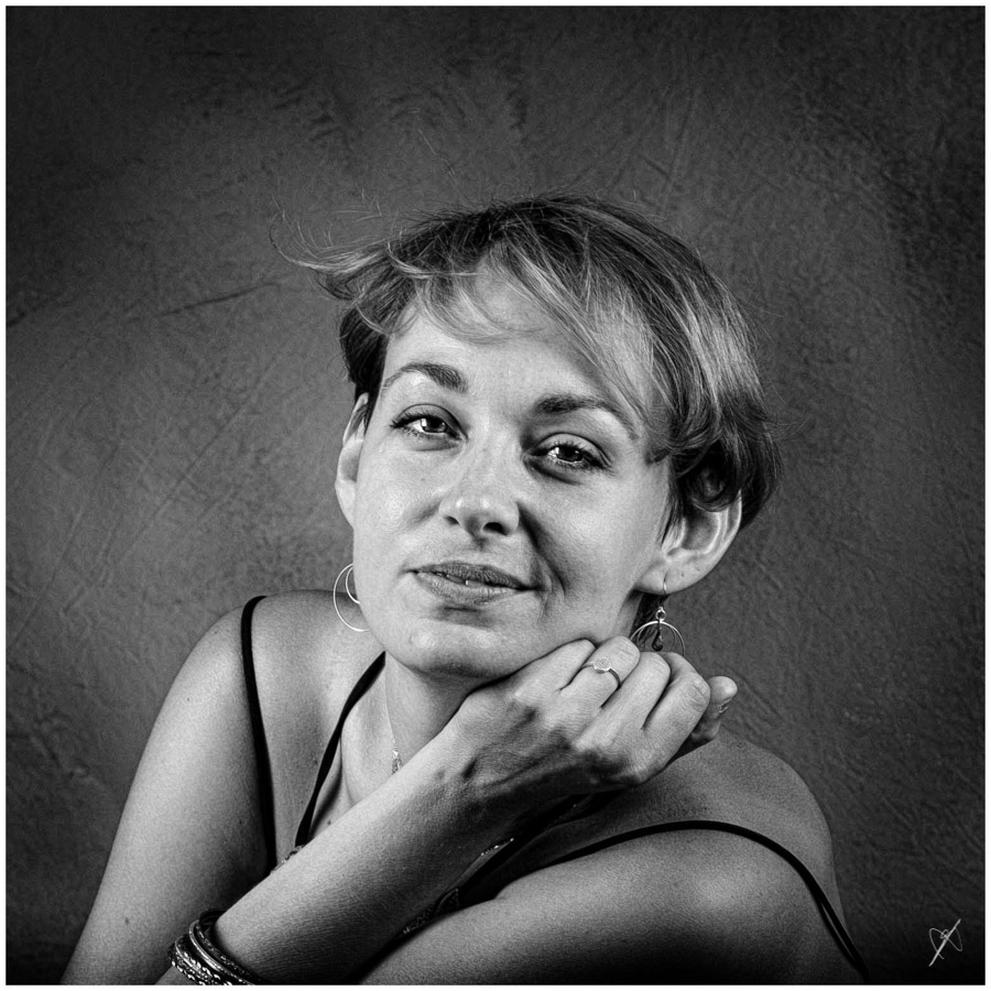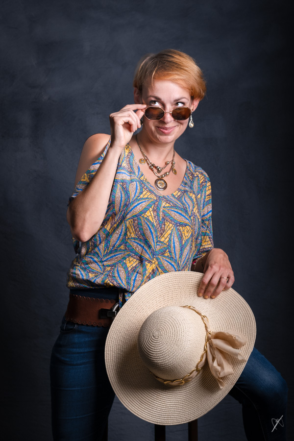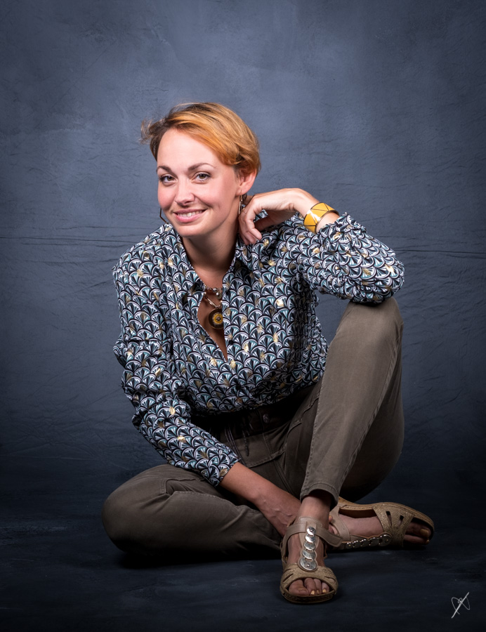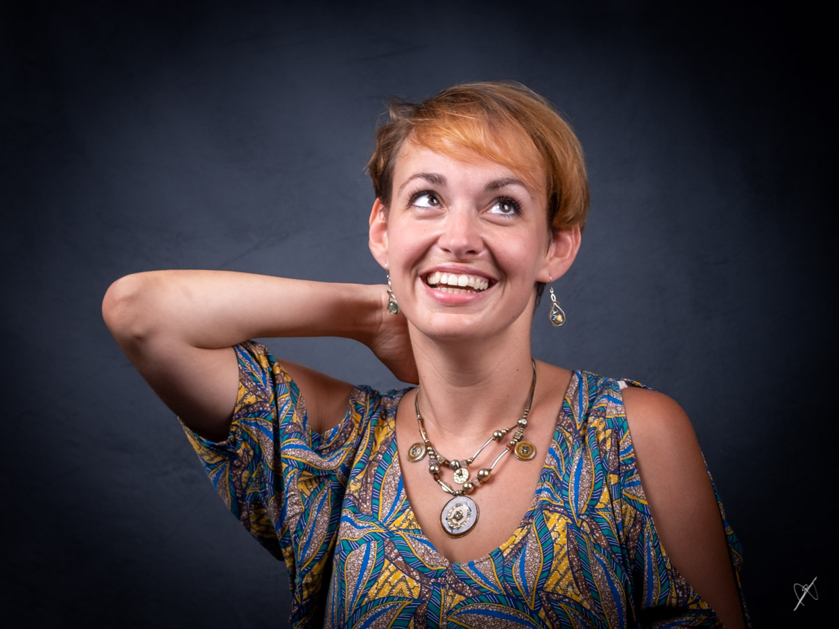 Difficile d'éloigner le modèle beaucoup plus sans voir les bords de l'arrière plan, mais j'aurais dû réduire la puissance des flashes pour pouvoir ouvrir bien plus.