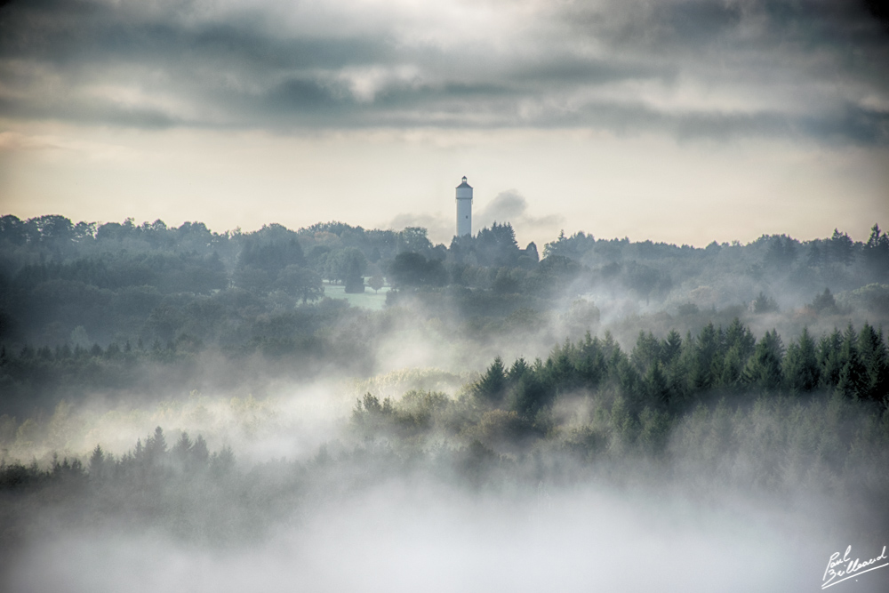 Il y a la brume du matin au dessus de la Vienne, le chateau d'eau de St Just en guise de phare, j'ai bien aimé la scène. Bon je l'ai peut-être mis un peu trop au milieu sur la première, du coup j'ai testé décentré mais je ne trouve pas mieux...